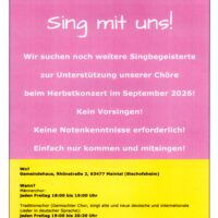 Die Proben für den Männerchor sind jeden Freitag ab 18 Uhr und für den traditionellen Chor ab 19 Uhr.…